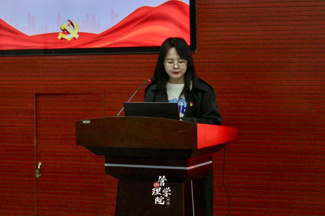 首先,大会第一项议程,由ky开元集团官网管理学院党委宣传委员张慧薇同志领学“第一议题”。张慧薇同志围绕深入学习贯彻习近平总书记对新时代马克思主义理论研究和建设工程作出的重要指示展开讨论。介绍并解读了该理论体系所传达的指示精神,指出要不断谱写马克思主义中国化时代化新篇章,要坚持守正创新的精神内涵。