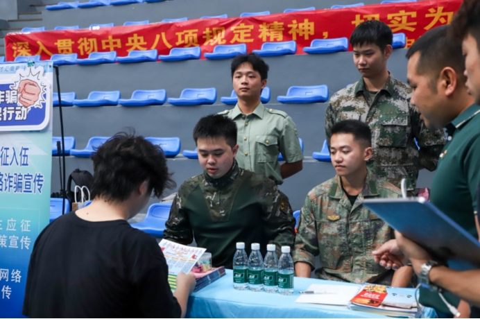 活动现场,机关党委充分发挥党员先锋模范作用,设立多个服务岗位,为师生提供全方位、多角度的贴心服务。在征兵政策宣讲区,退役复学大学生党员组成宣讲团队,耐心解答同学们的参军政策疑问,鼓励大家积极投身国防事业,为强军梦贡献力量。