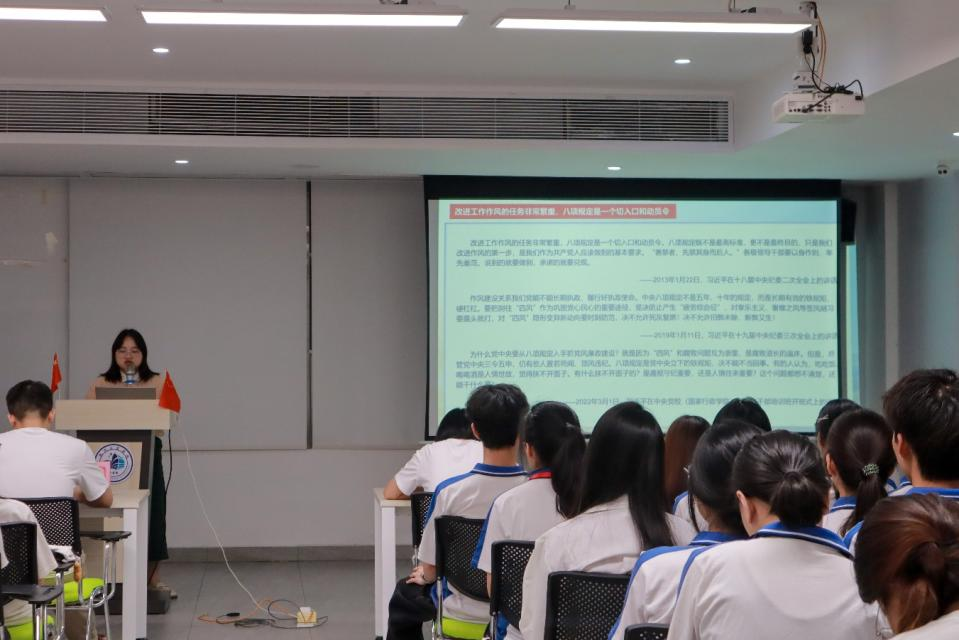 首先,由管理学院党委宣传委员张慧薇同志领学“第一议题”,向大家深入解读中央八项规定精神。她指出,党的作风建设是党保持先进性和纯洁性的关键所在,中央八项规定自出台以来,始终是约束党员行为、推进党风廉政建设的重要准则。张慧薇同志结合党的十八大以来习近平总书记关于中央八项规定精神的系列重要讲话,从改进调查研究、精简会议活动等八个方面,详细阐释了中央八项规定的具体内容,并强调学员们要深刻领悟其精神实质,将其融入日常的学习、生活和工作中,坚决抵制形式主义、官僚主义、享乐主义和奢靡之风。