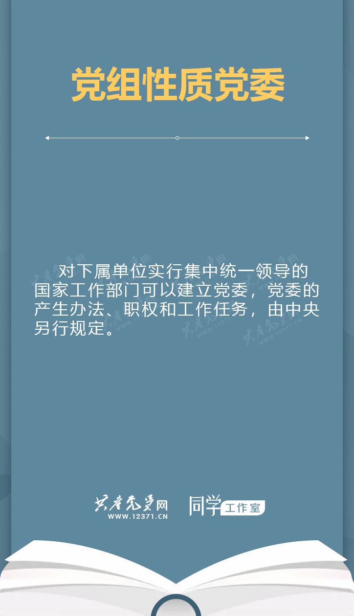对下属单位实行集中统一领导的国家工作部门可以建立党委,党委的产生办法、职权和工作任务,由中央另行规定。
