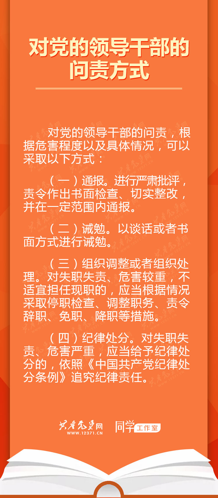 对党的领导干部的问责,根据危害程度以及具体情况,可以采取以下方式: