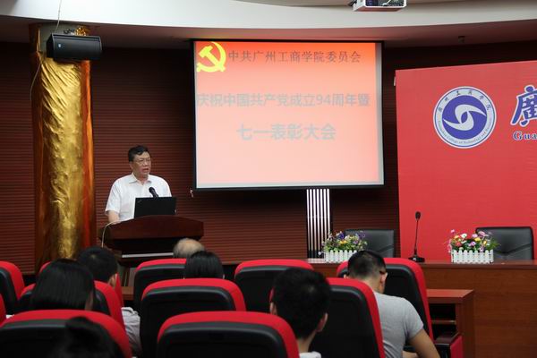 【本网讯】为树立典型,弘扬正气,激励各级党组织和广大党员干部争先创优,建功立业,2015年7月1日下午,我院召开庆祝建党94周年暨先进集体、优秀个人表彰大会。学院党委书记钟伟强、副书记吴丽云、宣传部长李明山出席会议,学院全体党务干部及部分党员代表参加了表彰会。
