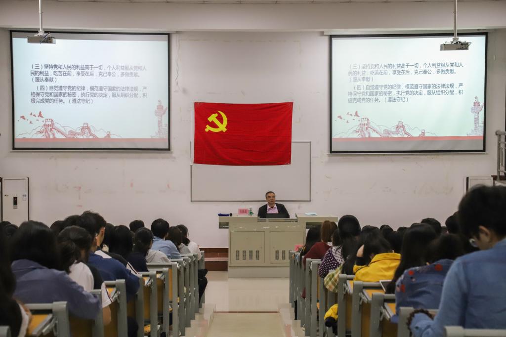 张书记从申请入党的条件、党员的基本标准、入党动机、党员的义务和权利三个方面详细全面地讲解了党章对党员提出的标准和要求,重温了入党条件,让全体积极分子进一步明确了入党条件和党员标准。