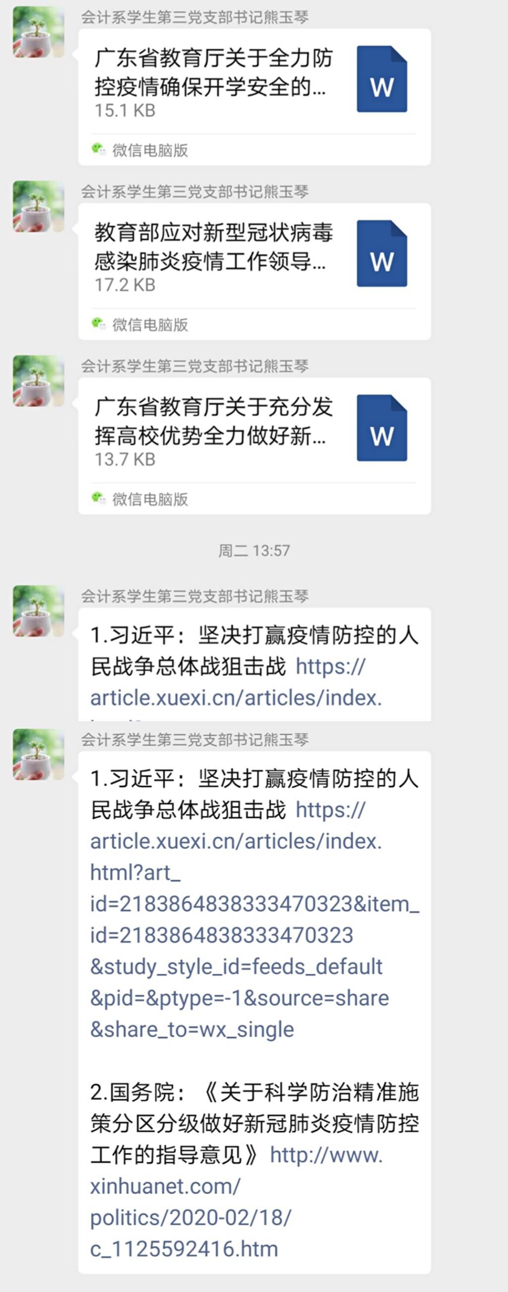 【本网讯】为认真贯彻落实习近平总书记关于新冠肺炎防控的重要讲话和指示精神,全面落实上级领导和学院党委关于在疫情防控期间开展组织工作的指示,3月24日,会计系学生第三党支部以语音会议的形式召开了线上党员大会。会议由党支部书记熊玉琴同志主持,全体党员在线参加。