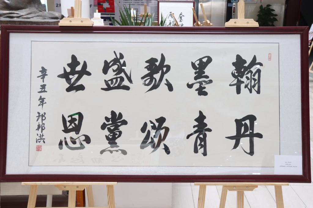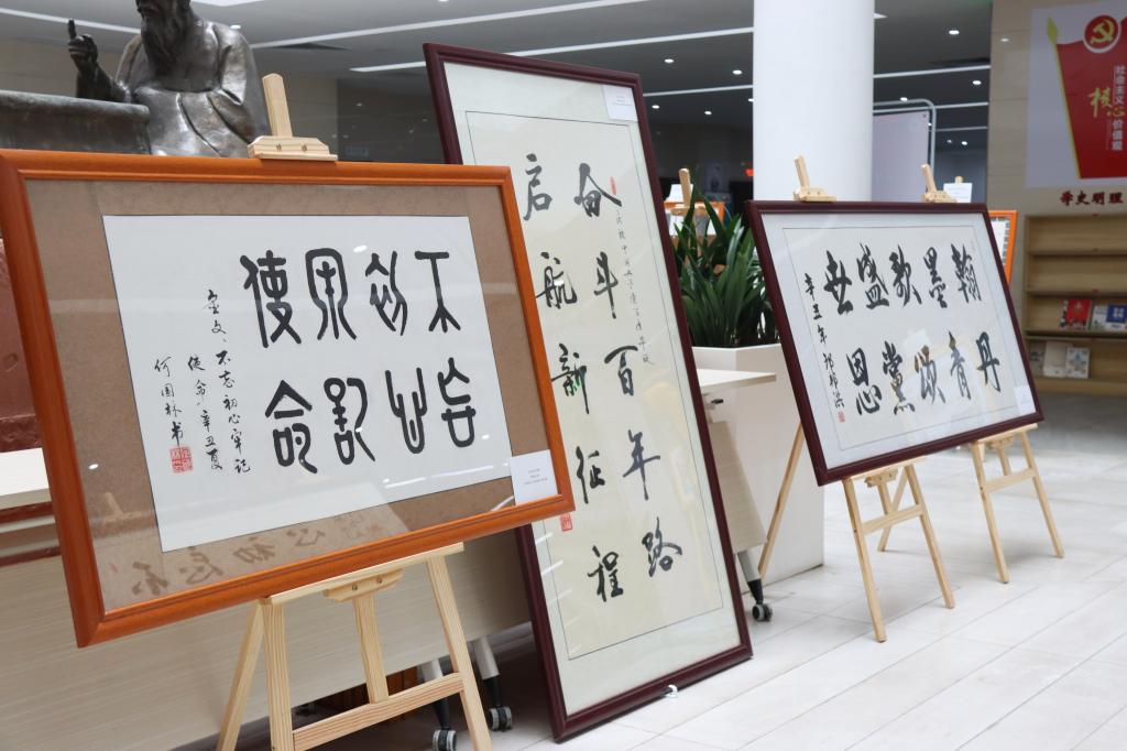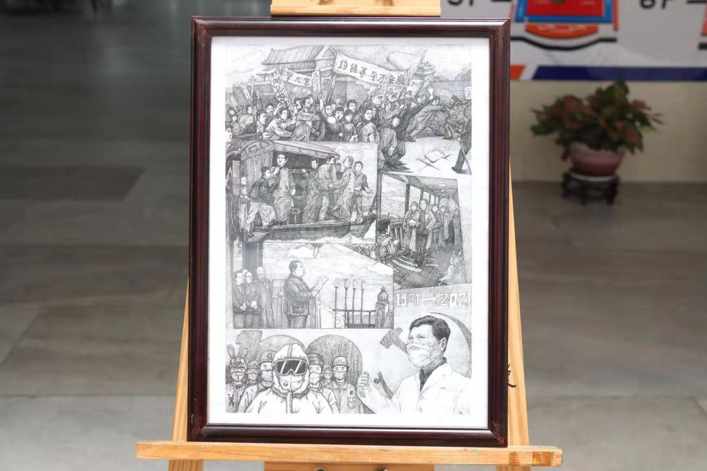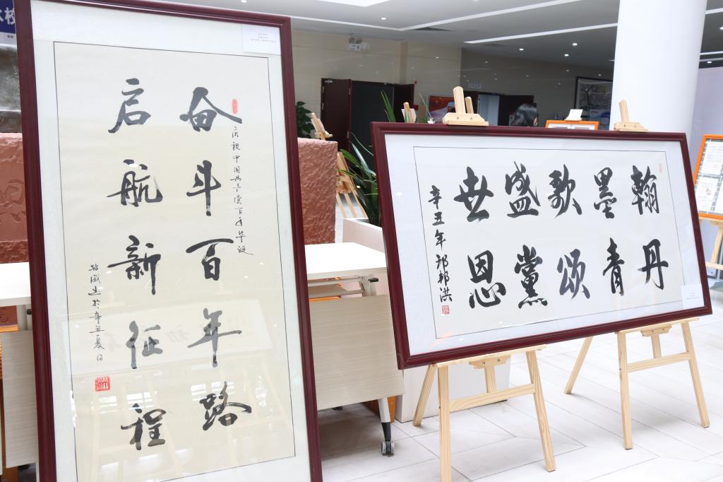 本次展览共展出书画作品56件,其中书法作品26件,以楷书、行书、隶书为主;绘画作品30件,包括插画、水彩画、国画、素描、剪纸画等多种形式。表现题材丰富多元,紧扣地域和时代特色进行创作,既有对建党百年辉煌发展的刻画,也有对党带领人民艰辛探索、不懈奋斗的生动描述。捕捉艺术瞬间,让党史学习教育更加入脑、入心。