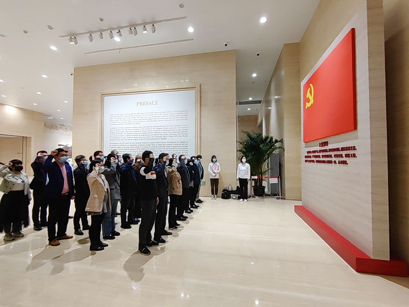 最后,学习培训班来到纪念馆的宣誓大厅。面向鲜红的中国共产党党旗,在张振超书记带领下,举起右拳,重温入党誓词。“我志愿加入中国共产党,拥护党的纲领,遵守党的章程……为共产主义奋斗终身,随时准备为党和人民牺牲一切,永不叛党。”铿锵有力的宣誓声响彻大厅。铮铮誓言,不忘初心。
