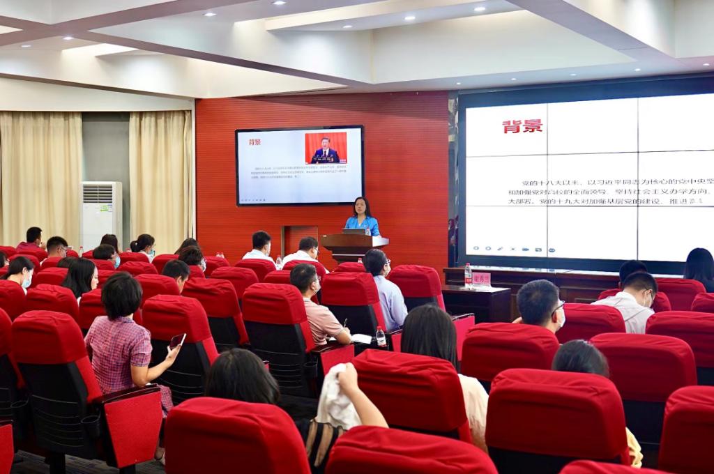 为贯彻落实《中共教育部党组关于高校党组织“对标争先”建设计划的实施意见》《中共教育部党组关于高校教师党支部书记“双带头人”培育工程的实施意见》,学校党委于2022年9月21日开展发展党员工作流程专题培训。本次培训由广东省高校基层党建工作研究基地主任,广东外语外贸大学党校办公室主任谢秀兰博士主讲,各基层党组织组织委员、专职组织员代表60余人参会。
