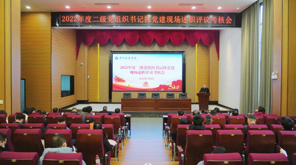 为进一步学习宣传贯彻党的二十大精神,压实基层党建工作责任,推动全面从严治党向基层延伸,实现以述促查、以评促建、以考促改的目标。2023年1月4日上午,学校党委在花都校区图书馆414报告厅召开2022年度二级党组织书记抓基层党建工作现场述职评议考核会。学校两委委员、党务部门负责人,各二级党组织述职书记、教职工党员代表,共73人参加会议。