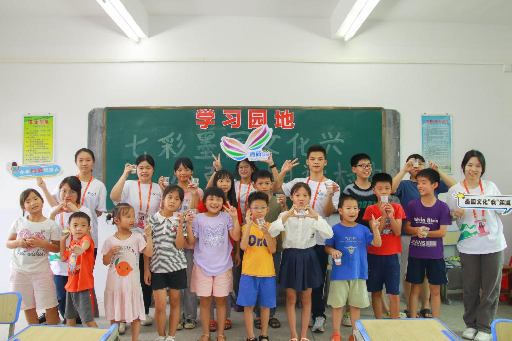 墨园突击队为延续传承墨园村200多年的文化习俗,弘扬墨园优秀传统文化,以“七彩课堂+研学”的授课模式,开展了“七彩墨园文化兴,盛夏暑期读村史”为主题的少儿古色文化培训营。“七彩课堂”涵盖了科学实验、粤菜菜系、客家菜系、粘土课堂、心理课堂、有趣的汉字等12个课程,提高少儿的课外文化素养,领略七彩课程的魅力,激发少儿对课外文化的兴趣与热爱。