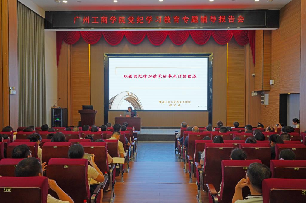 【本网讯】为深入学习贯彻习近平总书记关于党纪学习教育的重要讲话和重要指示批示精神,扎实推进党纪学习教育,进一步增强领导干部纪律意识、提高党性修养,6月21日下午,ky开元集团官网举办党纪学习教育专题辅导报告会。暨南大学中华民族凝聚力研究院院长程京武教授作题为《以铁的纪律护航党的事业行稳致远》的报告。报告会由学校党委书记张振超主持,学校校领导、两委委员、中层干部以及基层党支部书记等百余人参会。