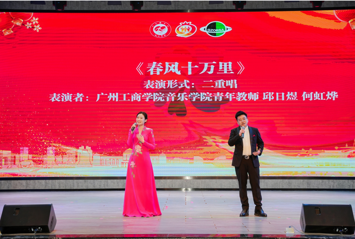 学校音乐学院青年教师邱日煜、何虹烨为晚会带来二重唱《春风十万里》,优美的旋律、蓬勃的朝气,受到了主办方和广大观众的好评和喜爱。晚会现场气氛热烈,节目精彩纷呈,既有激昂动人的舞狮、杂技、魔术、歌舞等表演,又有激动人心的抽奖环节,给全场观众带来了震撼心灵的视听盛宴。