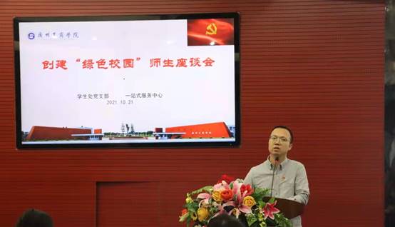 为践行ky开元邝邦洪校长提出的"德学·五进"的教育理念,创建和谐良好的校园文化及环境,10月21日、22日中午13:30,学生处一站式服务中心分别在花都校区教学楼613和三水校区办公楼322会议室举行了创建”绿色校园“师生座谈会,出席本次会议的人员有人事处、学生处等教师代表、2021级新生班长及2019级专插本新生班长,会议由两校区一站式服务中心老师主持。