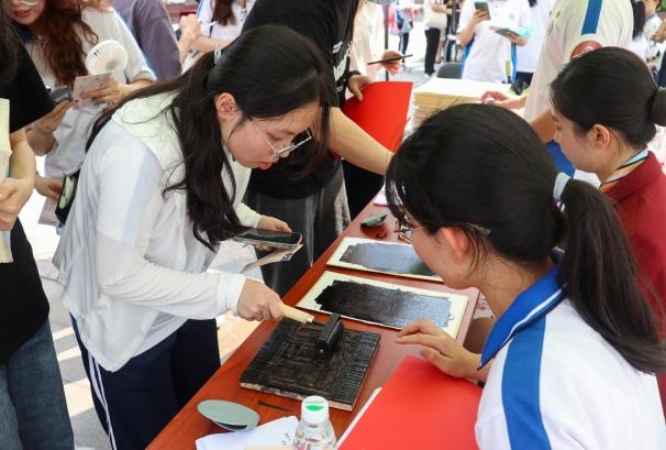 同学们体验黄埔军校旧址纪念馆日历拓印