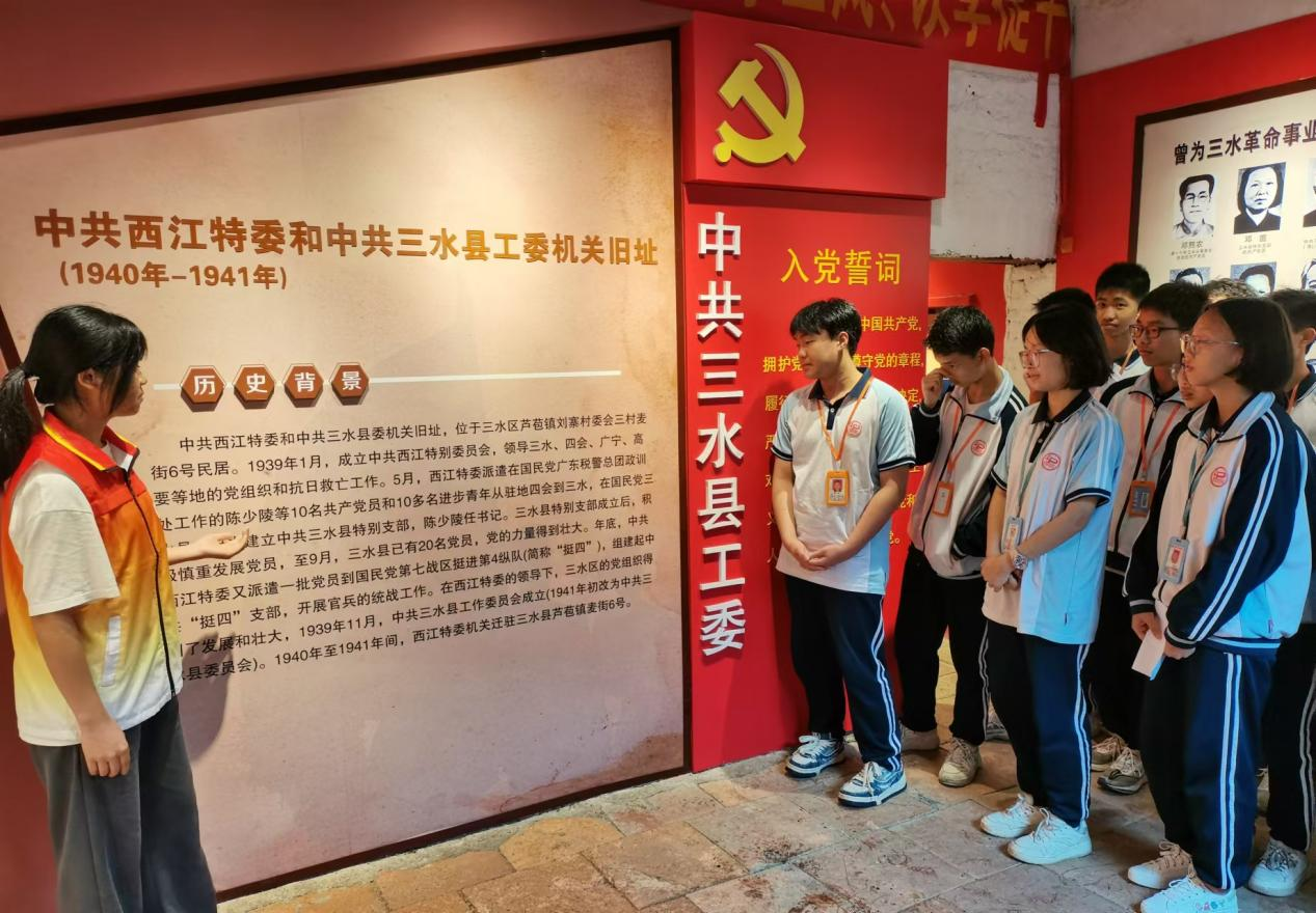 【本网讯】为进一步落实广东省百校联百县助力“百县千镇万村高质量发展工程”行动,5月20日,学校星火讲解队驻点中共西江特委和中共三水县(工)委旧址,为龙坡中学团支部的20余名学生提供红色文化讲解志愿服务,引导广大青少年坚定信念,传承红色基因,增强爱党爱国爱社会主义的情感,树立为中华民族伟大复兴而努力学习的远大志向。