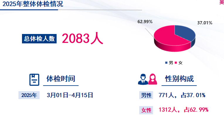 同时,本次体检中复查金使用人数为137人。对于需要复查的教职工,得到更加完善的检后增值服务。