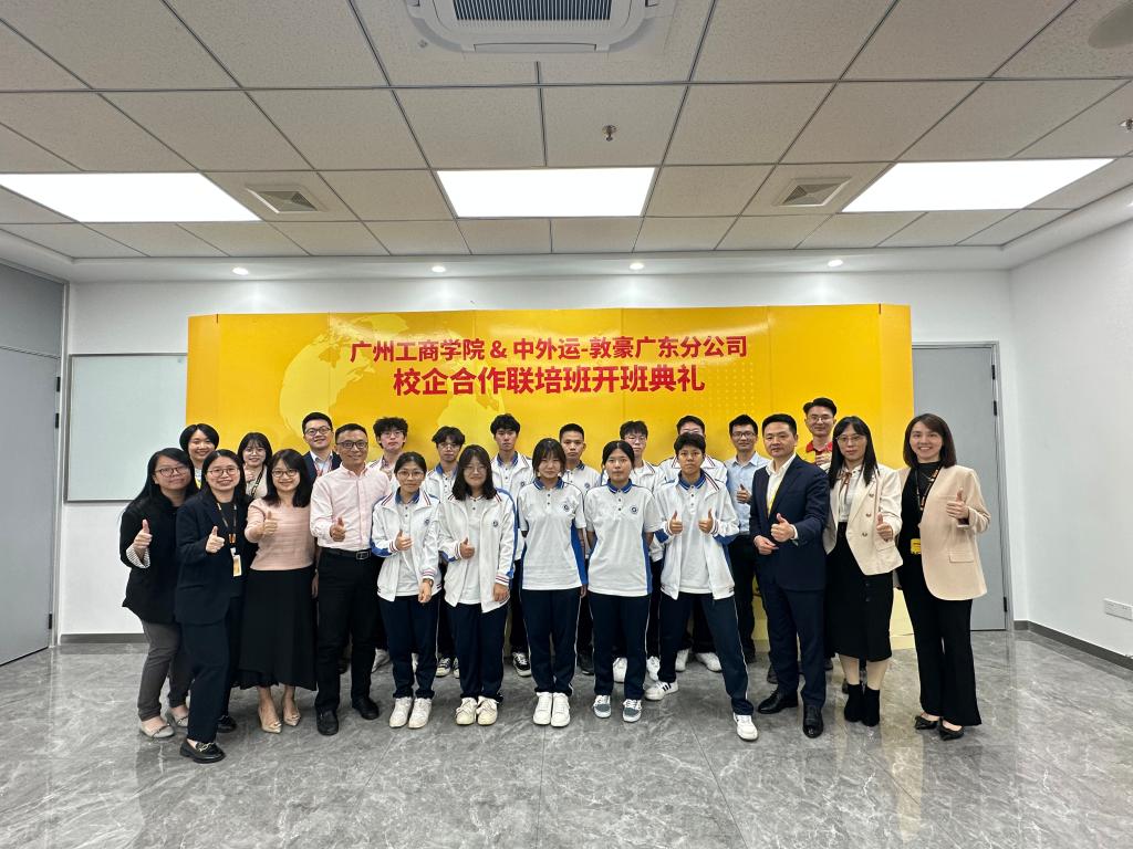 【本网讯】为进一步深化产教融合,强化校企合作,11月23日下午,管理学院在中外运—敦豪国际航空快件有限公司广州花都服务中心召开2023级校企联培“国际供应链运营班”开班仪式。学院副院长邹剑峰,办公室主任陈海松、物流管理教研室主任王文娟、学工办副主任蒙宗玲一行4人带领2023级物流管理(国际供应链运营)校企联培班11名学生前往参加,中外运敦豪作业总监张宇以及五位企业导师出席活动。(联培班仪式师生合影)活动开始,...