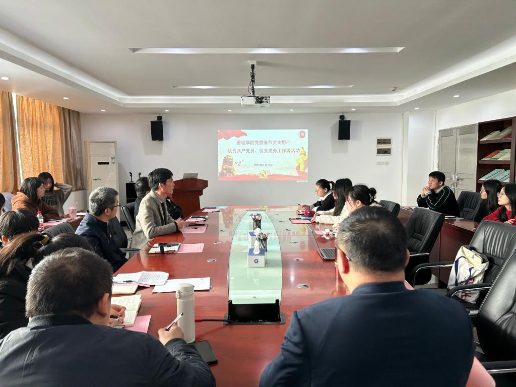 【本网讯】2025年1月15日,正值新春佳节即将来临之际,管理学院党委组织开展了走访慰问优秀共产党员与优秀党务工作者的活动,向他们送去组织的关怀与温暖。会上,管理学院党委书记乔鹏亮同志首先对教工党支部和学生党支部的支委班子在2024年中的认真工作和辛勤奉献表示肯定,并向他们致以诚挚的新春祝福。随后,他详细总结了本年度各党支部的工作成果与建设情况,既细数了各师生党支部在党建、教学、科研、竞赛等方面取得的显著...