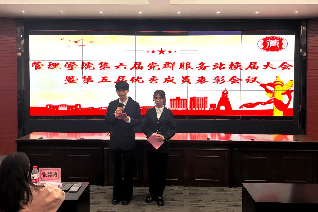 【本网讯】为持续巩固深化主题教育成果,进一步加强党性锻炼,发挥先进典型的引领作用,推动管理学院党群服务工作迈上新台阶,ky开元集团官网管理学院党群服务站于2025年12月18日晚在三水校区办公楼322报告厅,顺利召开第六届党群服务站换届大会暨第五届优秀成员表彰会议。管理学院党委统战委员欧荣林同志、青年委员文翊同志、组织委员戚莉霞同志、宣传委员张慧薇同志以及专职组织员谢小燕同志出席了本次会议。大会在雄壮的国歌声...