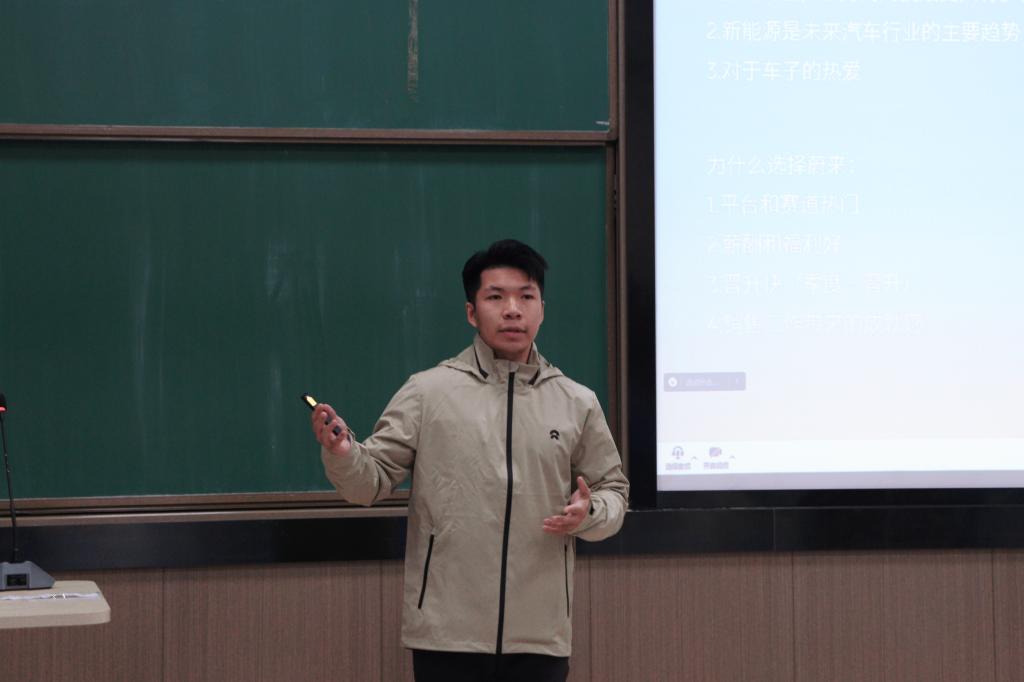 【本网讯】2024年12月12日,管理学院在第一实验楼C204教室成功举办了蔚来汽车2025届校园招聘宣讲会。此次宣讲会旨在进一步搭建校企合作平台,拓宽毕业生就业渠道,精准对接企业需求,为即将步入职场的学子们提供宝贵的职业指导和就业机会。