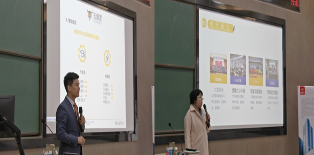 会议首先是由企业代表人依次轮流以PPT展示的形式对自家企业进行介绍,其中包括职业规划、员工薪酬福利、职场环境、招聘计划等情况,并给分发了相关资料,使同学对各企业有了进一步的了解。