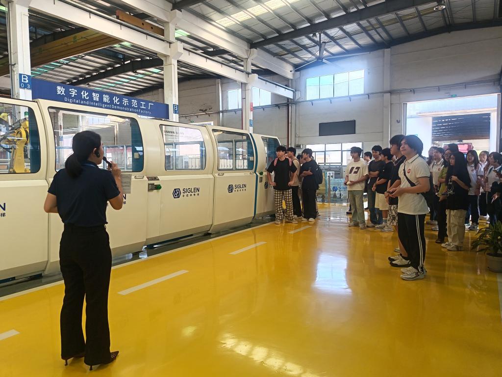 首先学生们走进了辛格林电梯有限公司,在专业人员的引导和讲解下依次参观了数字化智能化示范工厂和数字化展厅。