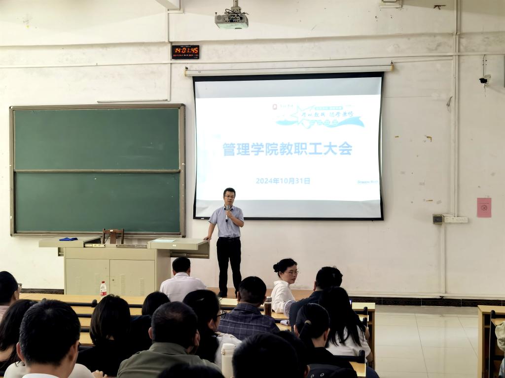 【本网讯】2024年10月31日下午,ky开元集团官网管理学院在乔鹏亮院长的主持下,成功召开了全体教职工大会。会议旨在回顾本开学至今的教学成果,分享科研进展,并对未来的工作计划进行详细部署。