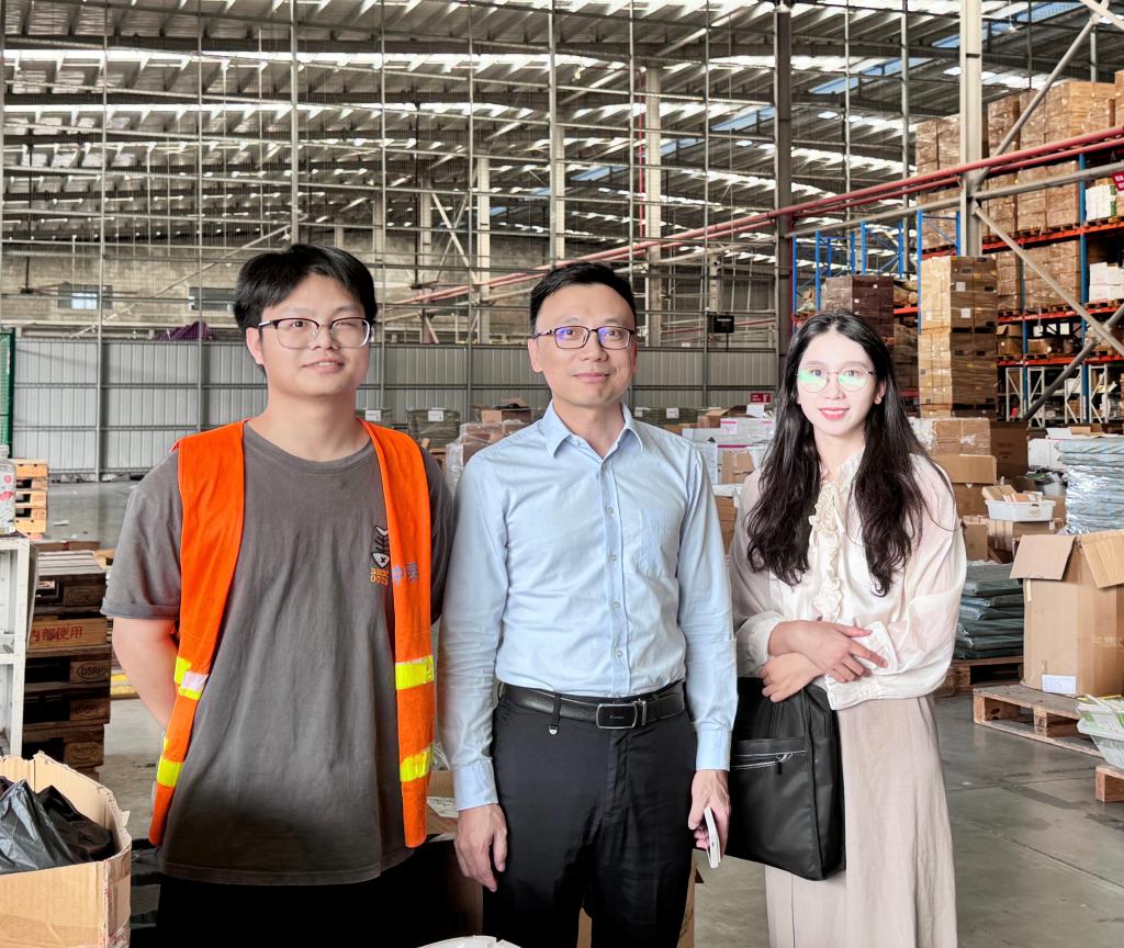 在与实习学生的交流中,邹剑峰副院长详细询问了学生的实习适应情况、上班时间及住宿条件,他关心学生的生活和工作环境。此外,邹院长鼓励学生要善于将理论知识与实践相结合,通过该企业的供应链系统深入了解物流储位情况,发挥管理创新能力,不断提升自身的专业能力和综合素质。