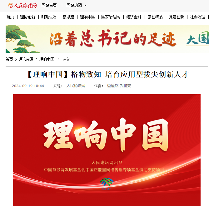 【本网讯】2024年9月19日,人民论坛网(中央主要新闻网站、中央重点理论网站)在理想中国版面刊发我院专任教师边恒然博士和院长乔鹏亮教授联合署名文章《格物致知 培育应用型拔尖创新人才》。