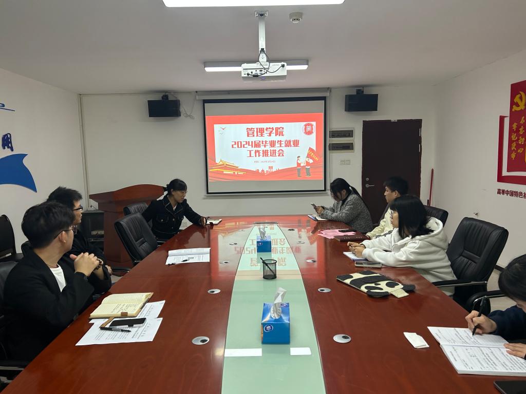 【本网讯】为贯彻落实习近平总书记关于做好高校毕业生就业创业工作的重要指示精神和党的二十大报告提出的“实施就业创业优先战略”,全力促进学院2024届高校毕业生高质量充分就业创业,抢抓春招黄金期,推动学院就业创业工作的全面发展,2024年3月14日,管理学院组织召开2024届毕业生就业创业工作推进会,学院办公室主任陈海松、学工办主任姚舜及全体毕业班辅导员参加会议,总结过去的工作经验,分析当前的就业创业形势和重要政策,交流探讨接下来的工作计划和目标。