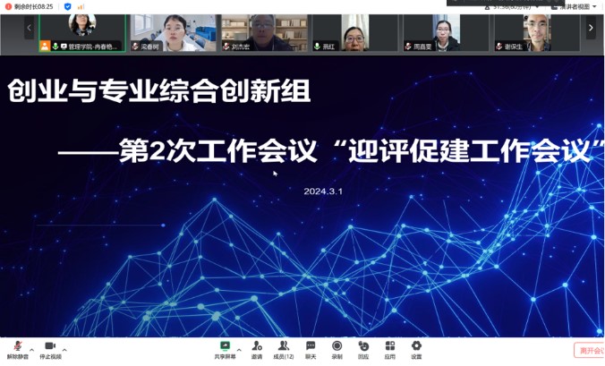 【本网讯】为了迎接教育部本科教学工作合格评估,认真配合做好学校“迎评促建”工作,管理学院工商管理专业教研室创业与专业综合创新课程组于2024年3月1日晚上19:40-20:40在腾讯会议(会议号:197422884)线上召开第二次工作会议——“迎评促建工作会议”。本次会议由创业与专业综合创新课程组组长冉春艳副教授主持,会议主要围绕着“传达课程教研室主任工作会议精神、课程建设任务说明与分配、课程考核方案制订要求讲解、磨课事项安排、毕业论文指导任务要求”等方面展开。在会议中,冉组长传达了学院领导对课程组工作的相关要求,包括重视课程和教材建设,确保工作制度化和规范化,争取获得有价值的成果,积极做好应用型教材建设,申报线上线下混合式教学改革项目和产教融合课程项目等内容。冉组长还强调“做好课程组安排的各项任务是学校迎评促建工作的基础,希望各位专任教师能够积极配合,共同努力把工作做好做实,为学院的发展做出贡献”。最后,管理学院副院长梁春树副教授做相关工作指示,要求课程组各位专任教师齐心协力,积极认真地配合课程组组长的工作,一起保质保量地完成各项任务。