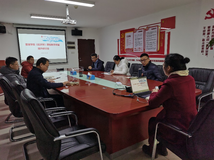 【本讯网】2024年2月28日上午,管理学院《经济学》课程组在院部楼624会议室召开课程教学质量提升研讨课,梁春树副院长、邹剑锋副院长、任德孝博士、张艳博士、宋阳博士、汤国儒博士、朱靖老师参加会议,会议由梁春树副院长主持。