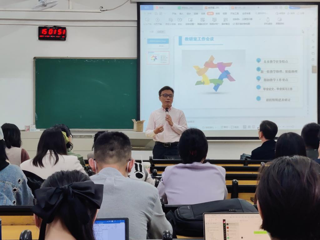 韩剑义副主任针对完善教师业务档案、课程教学材料编制、全员说课磨课活动安排等多项工作进行了安排。特别提醒要充分认识到教师业务档案是本科教育合格评估重要支撑材料,各位专任教师均需严格按照“关于补充完善教师业务档案工作的通知及要求”与学院最新通知、结合上一学期教学工作实际情况完善教师业务档案。此外,新学期伊始,一流课程负责人及课程组长、首席教师组织好本课程集中备课活动,各位任课老师按时保质保量备好课、按要求准备好教学材料。还指出为督促教学质量提高,在吸取第一学期新教师说课磨课活动经验的基础上,拟定本学期全员说课磨课新方案,预计3月底前完成说课磨课工作。
