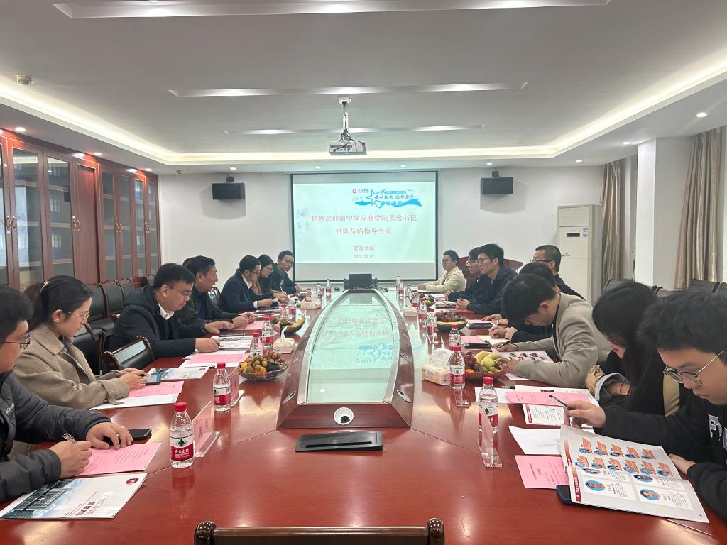 【本网讯】12月7日,南宁学院商学院吴忠书记一行12人来我院交流座谈,学院党委书记乔鹏亮对吴忠书记一行表示热烈欢迎,党委副书记赵小锋,党委统战委员、学工办主任姚舜,党委宣传委员张慧薇以及我院工商管理专业负责人侯治平、实验室实验员张恒涛一同参加座谈会。