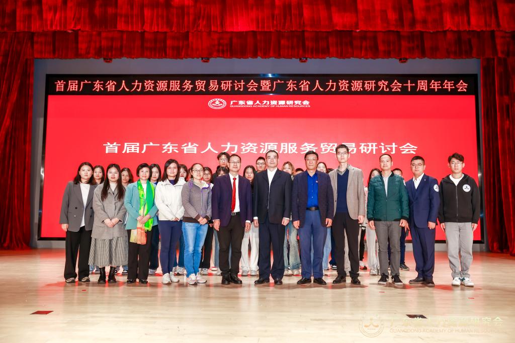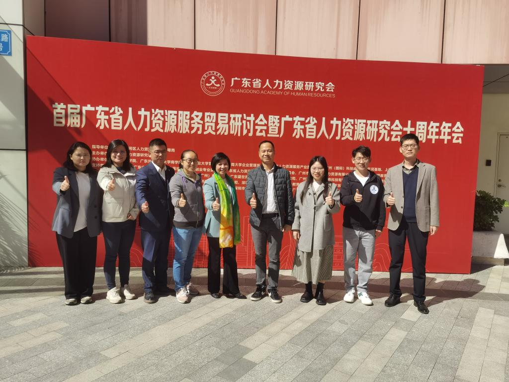 【本网讯】2023年11月18日,我院赵小锋副院长、人力资源管理教研室王光辉、江伟、张予琦等7位老师和2023级人力资源管理数智化人才管理实验班的学生,参加了《首届广东省人力资源服务贸易研讨会暨广东省人力资源研究会十周年年会》,本次大会由广州市天河区人力资源和社会保障局指导,广东省人力资源研究会主办,中国广州人力资源服务产业园先导区、广州(国际)科技成果转化天河基地、上海世智人力资源有限公司协办,在广州市天河区天河北路886号广州(国际)科技成果转化天河基地1楼会议中心隆重举行。参会对象涵盖政府机构领导、研究会会员代表、高校学者、企业家、企业高管与行业HR精英等近300人,群贤毕至,少长咸集。