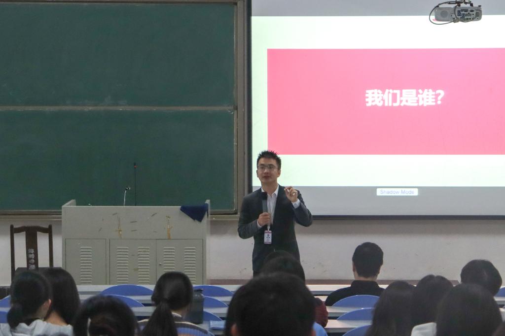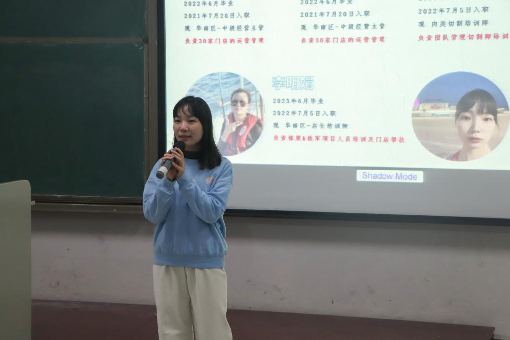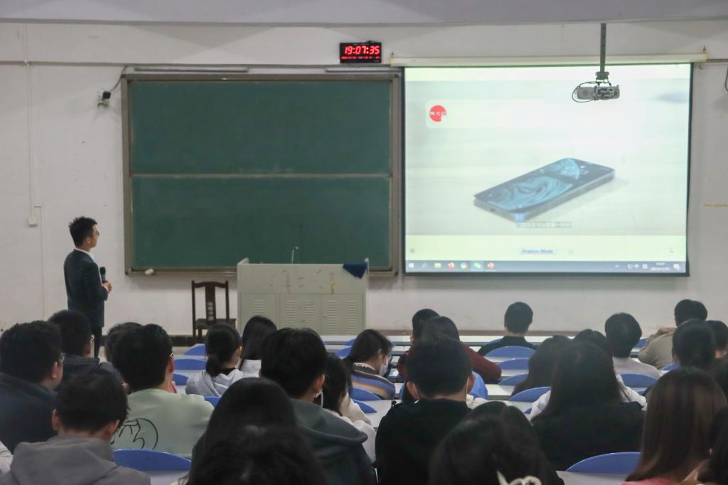 宣讲会开始,钱大妈公司负责人简单讲述了钱大妈企业经营范围并以视频的形式向在座的同学们展示了该公司的企业形象,通过视频让大家简单地了解到钱大妈。
