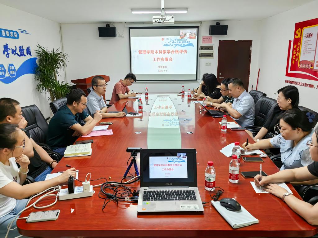 【本网讯】2023年7月7日下午3点,管理学院在院部楼624会议室召开“本科教学合格评估工作布置会”。管理学院学院乔鹏亮院长、各副院长、办公室主任、行政教辅人员,以及教研室主任和专业负责人出席了本次会议。