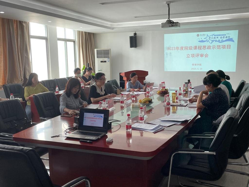 【本讯网】根据学院《关于做好2023年度院级教学质量与教学改革工程项目申报工作的通知》文件精神,我院组织了关于2023年度院级课程思政示范项目立项评审会议。评审会议于2023年5月18日在院部楼612会议室召开,由梁春树副院长主持,邀请管理学院课程建设工作委员会王拉娣、吴婷、王文娟等9位委员作为本次评审专家对我院申报项目进行评审。