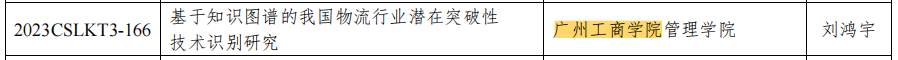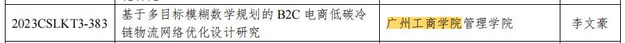 近日,中国物流学会、中国物流与采购联合会联合下达了“2023年度中国物流学会、中国物流与采购联合会研究课题计划”的通知,管理学院刘鸿宇老师“基于知识图谱的我国物流行业潜在突破性技术识别研究”、李文豪老师“基于多目标模糊数字规划的B2C电商低碳冷链物流网络优化设计研究”和陈伟老师“产学研赛创用视域下食品冷链物流创新创业人才的培养模式研究”3个项目喜获面上研究课题立项。