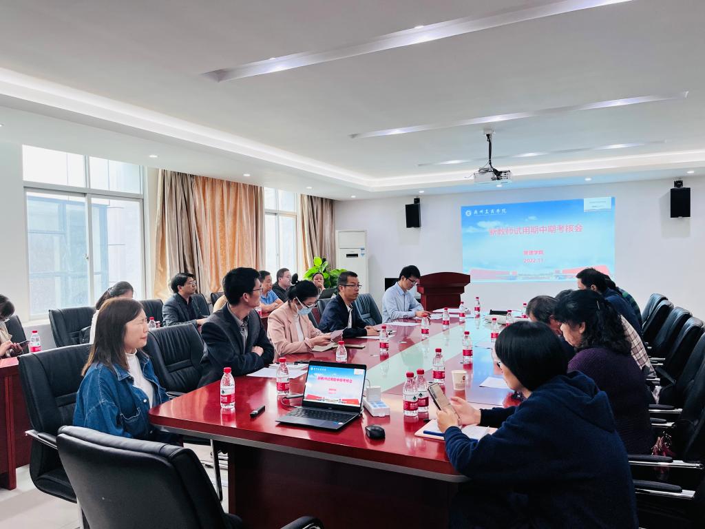 【本网讯】为进一步贯彻落实《ky开元集团官网教职工试用期管理及转正办法》(广工商院人发﹝2021﹞12号)的工作要求,学院于2022年11月24日下午14点在院部楼612召开2022-2023学年第一学期“新入职教职工试用期中期考核会”。因疫情影响,其中3位教师通过线上方式进行考核。会议由乔鹏亮院长主持,梁春树、赵小锋、邹剑峰副院长及学院督导、办公室、学生工作办公室组成考核组成员参加了会议。
