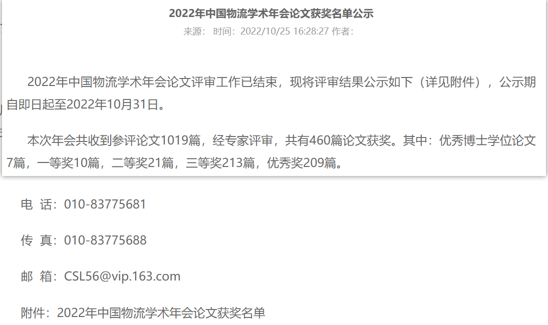 2022年中国物流学术年会获奖论文名单公示