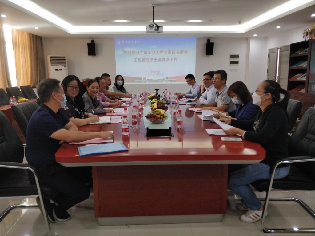 【本网讯】2022年10月20日在院部楼612会议室,管理学院特邀广东工业大学王志红教授、冯为民教授两位专家前来对我院工程管理硕士点建设工作进行指导。会议由管理学院院长乔鹏亮主持,副院长邹剑峰、梁春树,以及工程管理硕士点建设小组全体成员参加了会议。
