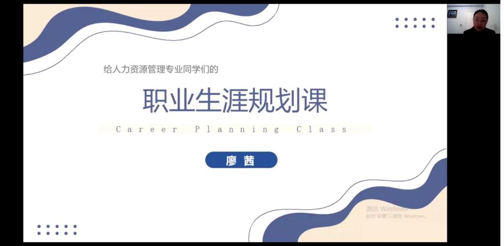 晚上7点,廖茜老师以“互联网人力资源沉浮”为主题给同学们上了一节职业生涯规划课,帮助对互联网行业或者人力资源相关岗位有兴趣的同学进一步了解具体岗位的职能和发展途径。廖茜老师主要是围绕“什么是职业生涯规划?HR的发展路径是什么?职业选择的底层逻辑是什么”这三个方面来向同学们进行讲解。其中廖茜老师结合自己十几年的职业生涯,重点向同学们讲述了关于HR的发展路径。同时,廖茜老师强调本次讲座的主要目的是:结合当前乌卡时代下拥有太多不确定性的背景,通过本次讲座能够帮助同学们基于自身规划和兴趣从容迈出职场“第一步”,拥有即将迈入职场的确定性和笃定感。