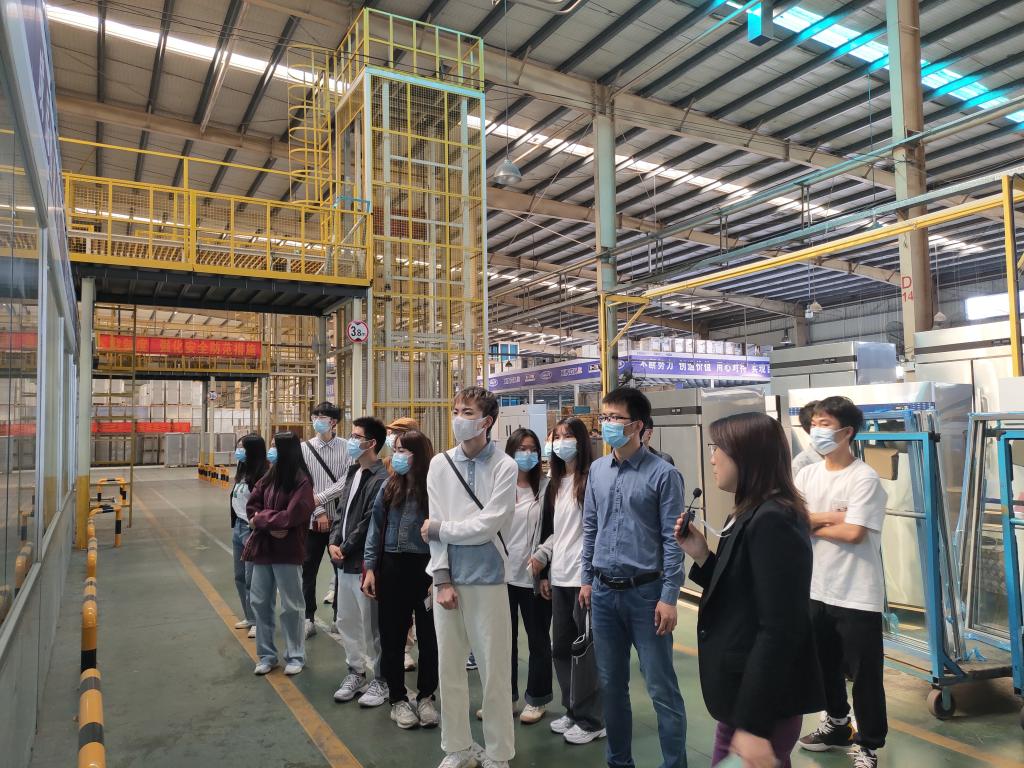 到达公司后,刘部长首先带领全院师生参观公司的展厅,对公司的发展历史、所取得的成绩、对社会的贡献、产品的研发情况等进行全面的介绍。随后,带领全体师生参观公司的车间,在参观车间时介绍了星星冰柜的制作流程、工作环境、工艺细节等。参观完车间后,全体师生移步公司的会议室进行交流互动。一是观看公司的宣传片,师生对公司有了更多的了解;二是学校毕业的师姐介绍在公司工作的情况,使大家对工作内容更加清晰;三是刘部长解答师生提出的问题,师生针对公司的工作岗位、薪酬待遇、晋升机制等方面提出了问题,刘部长耐心给予解答。