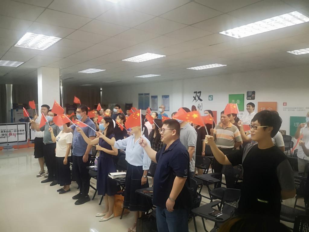 此次活动恰逢国庆来临之际,全体教师共同唱响歌曲“歌唱祖国”,以表达对党和祖国的热爱与衷心的祝福,高喊“请党放心、强国有我”口号,充分表达了为祖国繁荣昌盛积极贡献的坚定信念和信心,高涨的爱国主义热情将活动气氛推向了高潮。