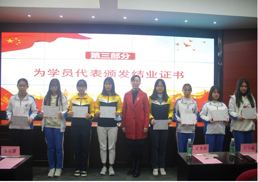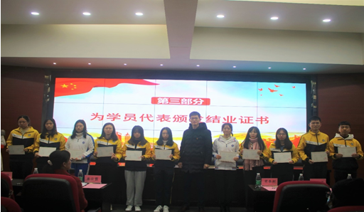 接着进行会议第三部分,由姜云霞教授和赵小锋同志为本学期党校培训班学员代表颁发结业证书并合影留念。