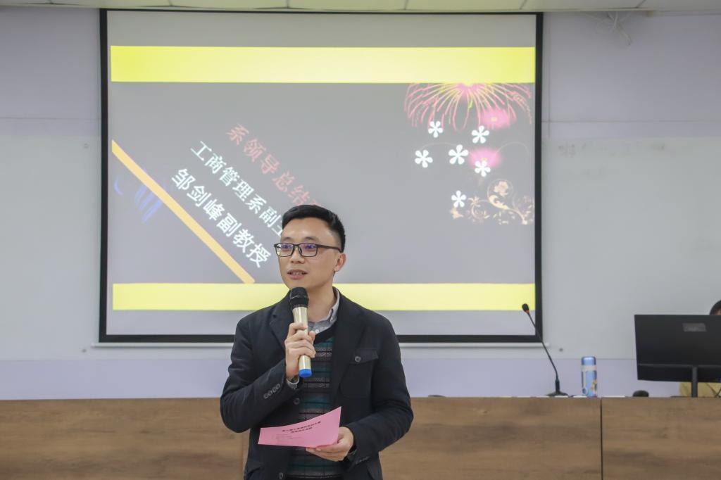 最后,工商管理系副主任邹剑峰副为本次大赛总结致辞。邹主任指出我系为提高学生的实践能力,举办了各种特色教育活动,而工商模拟实训大赛作为我系特色教育活动中的一项。这次活动体现了学院的德学“五进”的办学特色,给予同学们实践的机会和展现自我的平台,在这过程中,同学们各方面的能力都有了一定的提高,并丰富了同学们的学习生活。不仅如此,本次大赛的组织者和参赛者都在本次活动中得到了一次实践能力的机会,并希望工商模拟实训大赛能够办出水平、办出成绩、为工商管理系培养更多有特色有新意的人才,祝愿大赛越办越好!