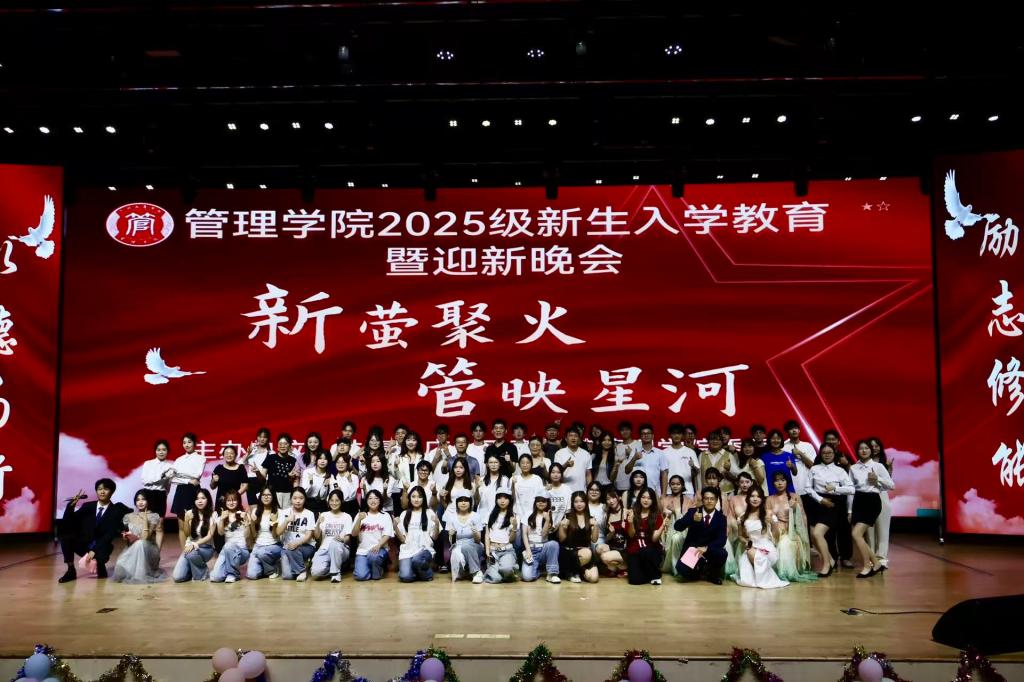 此次新生入学教育活动暨迎新晚会的成功举办,不仅让2025级新生感受到了管理学院大家庭的温暖与活力,更是一堂生动的“开学第一课”。它标志着全体新生正式融入了管院的生活,开启了人生崭新的征程。愿所有2025级管理学院新生如晚会主题所寄望的那样,每一只“新萤”都能在此汇聚,迸发出璀璨的火焰,共同映照出管理学院更加灿烂的星河未来!