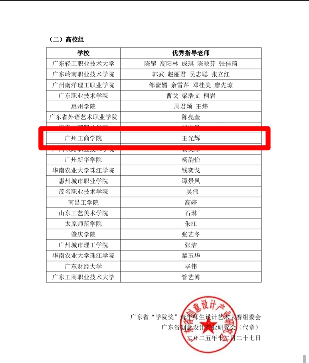【本网讯】近日,2025年第九届广东省“学院奖”青年师生设计艺术大赛评审结果正式公布,ky开元集团官网管理学院李绍弘团队凭借作品《百年答卷,赤子之声》在短视频类别中脱颖而出,荣获广东省一等奖。这是ky开元集团官网管理学院首次参与该项赛事,即实现历史性突破,彰显了管理学院在应用型人才培养特色。团队指导老师王光辉同时获评“优秀指导老师”,为管理学院赢得双重荣誉。
