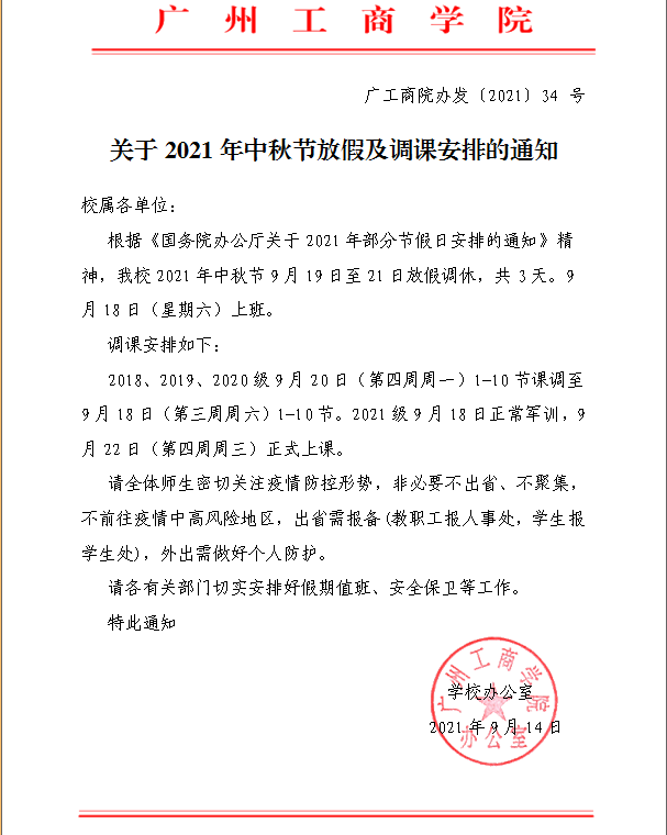 上一篇:关于2021年国庆节放假及调课安排的通知