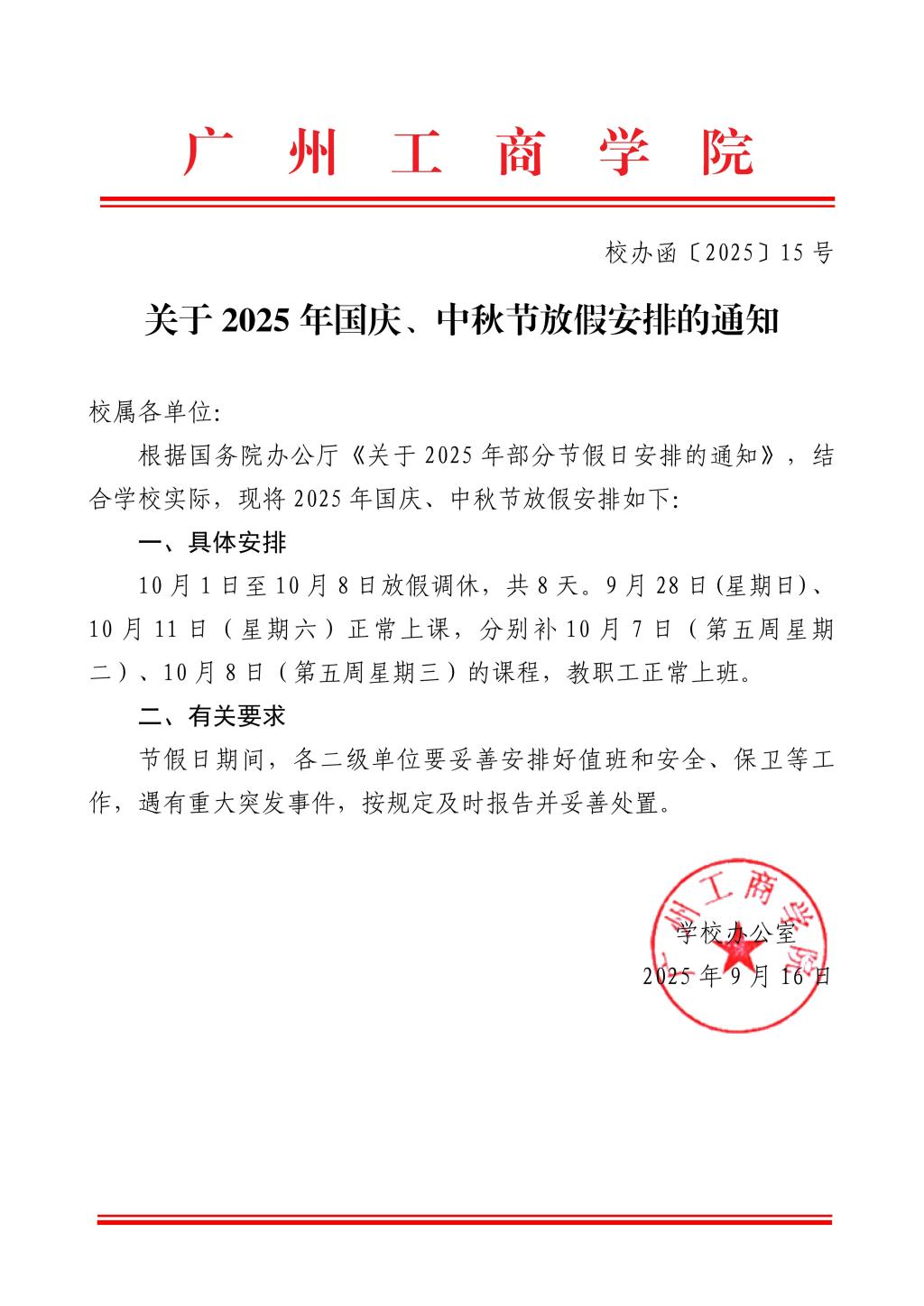 【关于2025年国庆、中秋节放假安排的通知】